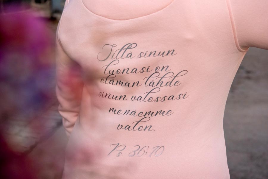Hengellisiä tekstejä sisältävillä vaatteilla viestit arvoista jotka kantavat yhä edelleen.